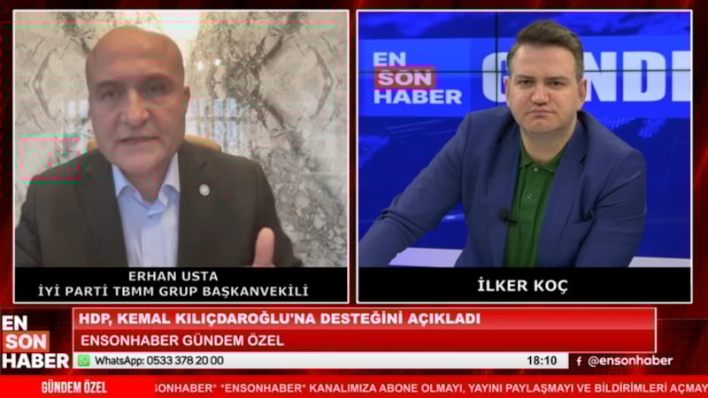 Ensonhaber'in YouTube kanalında İlker Koç'un sunduğu programın canlı yayın İyi Parti Grup Başkanvekili Erhan Usta oldu.