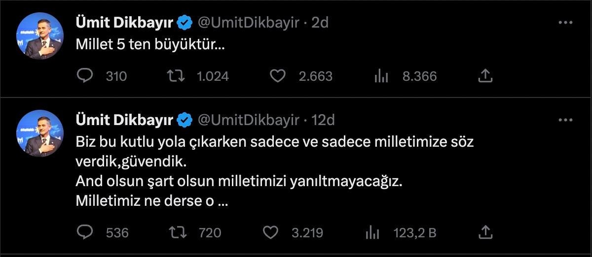 İyi Parti Sakarya Milletvekili Ümit Dikbayır, konuya ilişkin sosyal medya hesabından bir açıklamada bulundu.