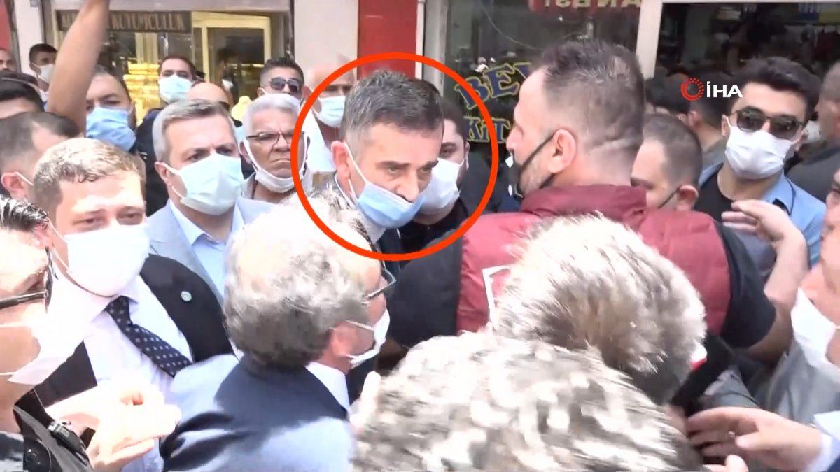 Kanatlı Caddesindeki bir iş yerinde Akşener'i takip etmek isteyen A Haber Muhabiri Halil İbrahim Uğur ile kameramanına izin verilmedi.