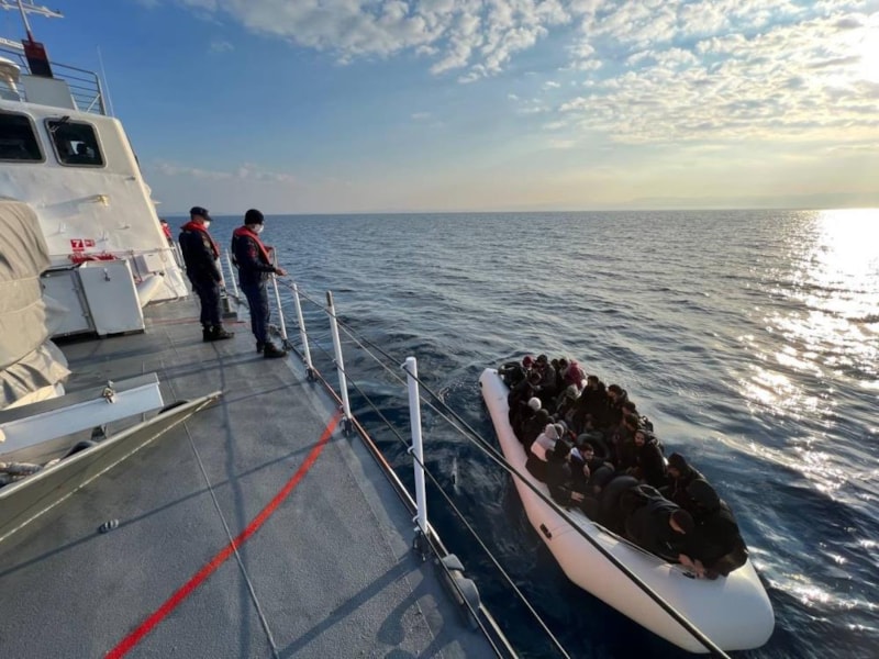 Sahil Güvenlik Komutanlığı ekipleri Çeşme, Dikili ve Foça ilçesi açıklarında can salı ve lastik bot içinde kaçak göçmenler olduğu bilgisi üzerine harekete geçti.