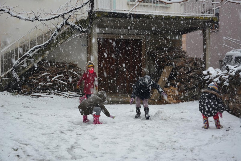 Kar kalınlığının 10 santimetreye ulaştığı ilçe merkezinde çocuklar kartopu oynadı, kardan adam yaptı.