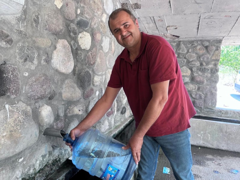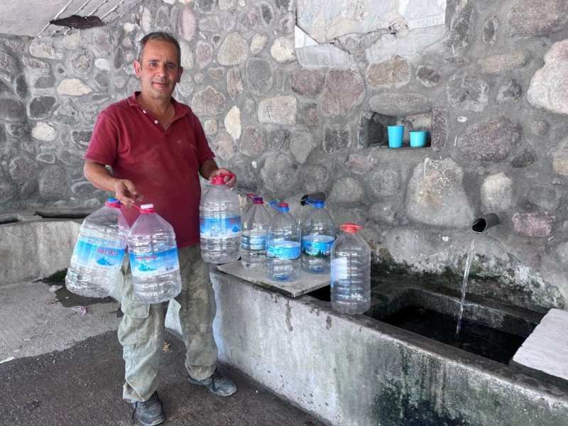 İşim gereği Bornova'nın bütün köylerini dolaştım. Her köyde çeşmeler akıyor, ama Yakaköy'de akmıyor. Kullanma suyunu bir şekilde temin ettik ama içme ve yemeklerde kullanılacak suyu bulmak gerçekten zor. Şu anda bulunduğumuz köyden 4 km yukarıda, az da olsa akan bir çeşme var. Köyün yüzde 75-80'i içme ve yemek suyunu buradan karşılıyor. Geriye kalan, yani oraya gidemeyenler ise suyu marketlerden almak zorunda kalıyor.