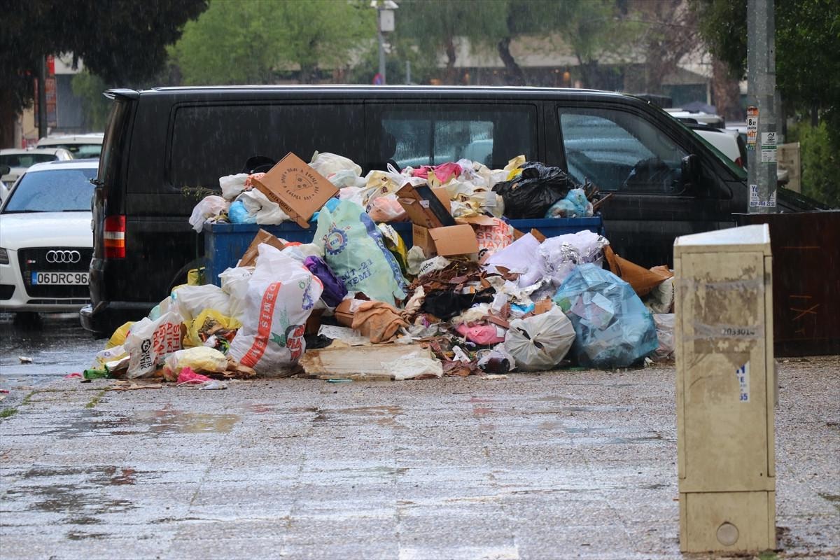 İşçilerin grevde olması nedeniyle bazı sokaklarda çöpler toplanmazken, çöp konteynerlerinin yanları ile sokaklarda çöp yığınları oluştu.