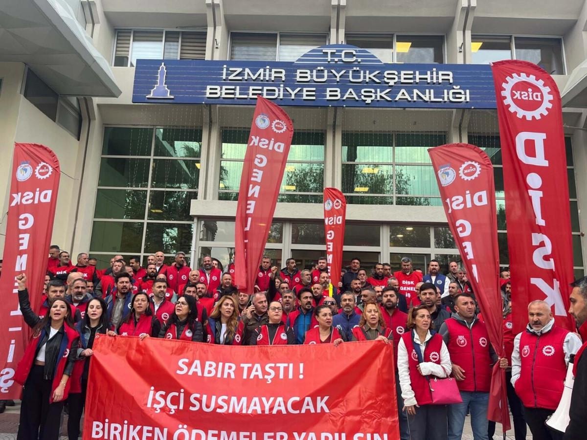 Büyükşehir Belediyesi bünyesinde bulunan İZENERJİ, İZELMAN VE İZFAŞ şirketlerinde örgütlü DİSK/Genel-İş İzmir 1-2-3-9 No'lu şube üyeleri, çalışanların 3 aydır sosyal haklarının ödenmemesi nedeniyle eylem kararı aldı.
