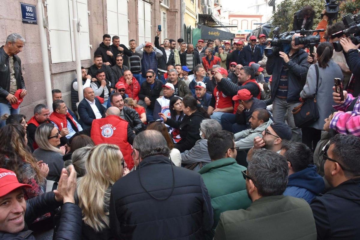 İzmir Büyükşehir Belediyesi'nin çeşitli birimlerinde görev yapan binlerce işçi, Konak Pier önünde toplandı.