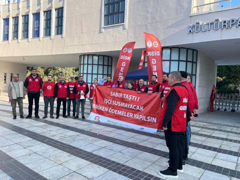 İzmir Büyükşehir Belediyesi bünyesindeki İZENERJİ, İZELMAN VE İZFAŞ şirketlerinde örgütlü DİSK/Genel-İş İzmir 1-2-3-9 No'lu şube üyeleri, eyleme başladı.