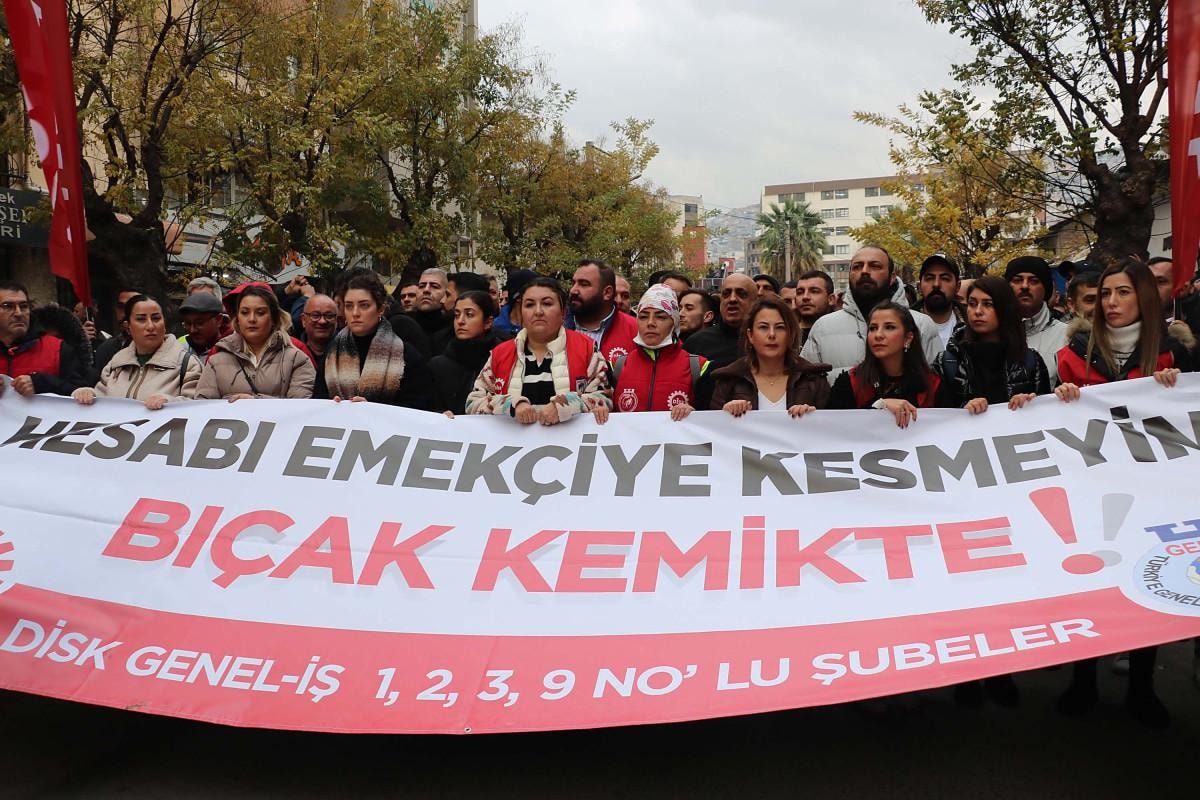 İşçiler, Genel İş İzmir Şubeleri önünde toplanarak Kültürpark Basmane Kapısı'na doğru yürüdü.