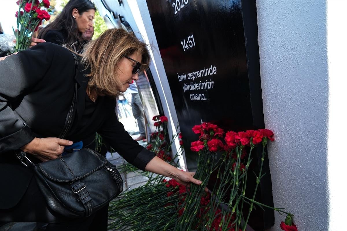 Bayraklı’daki 30 Ekim Deprem Anıtı önünde düzenlenen törende ise duygu dolu anlar yaşandı.