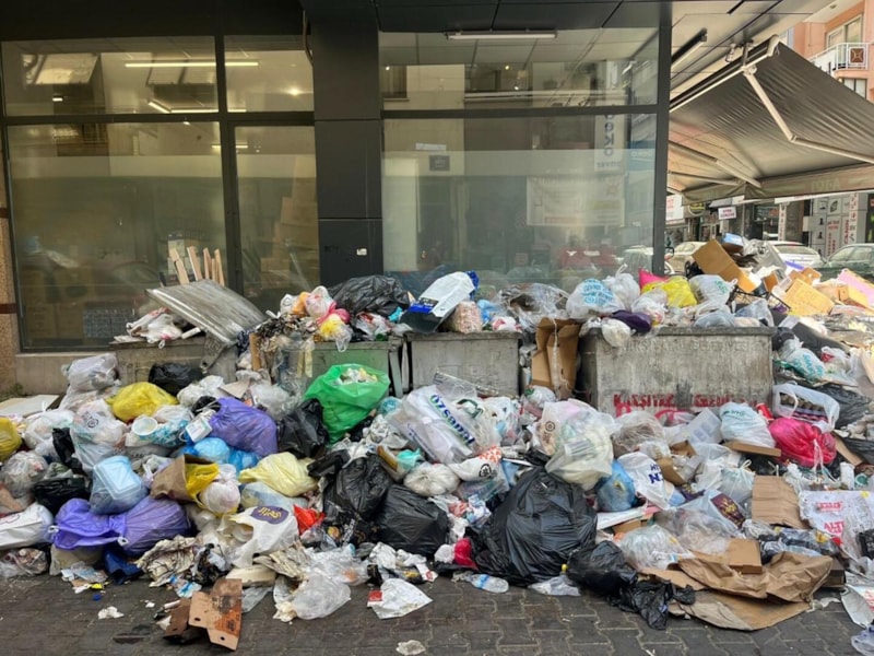 Eylemin ardından Karşıya ilçesinin cadde ve sokaklarında çöp yığınları oluştu.
