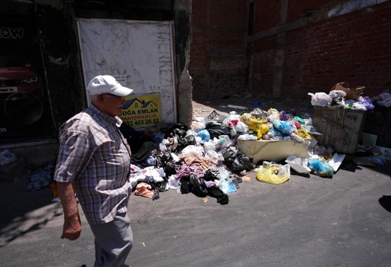 Öyle ki biriken çöpler, kaldırım ve yollara taştı...