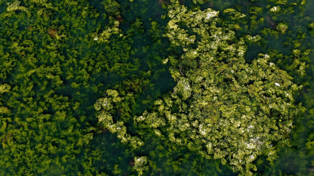 Söz konusu lagünde, suyun üzerinin önemli bir kısmı deniz marullarıyla örtüldü.