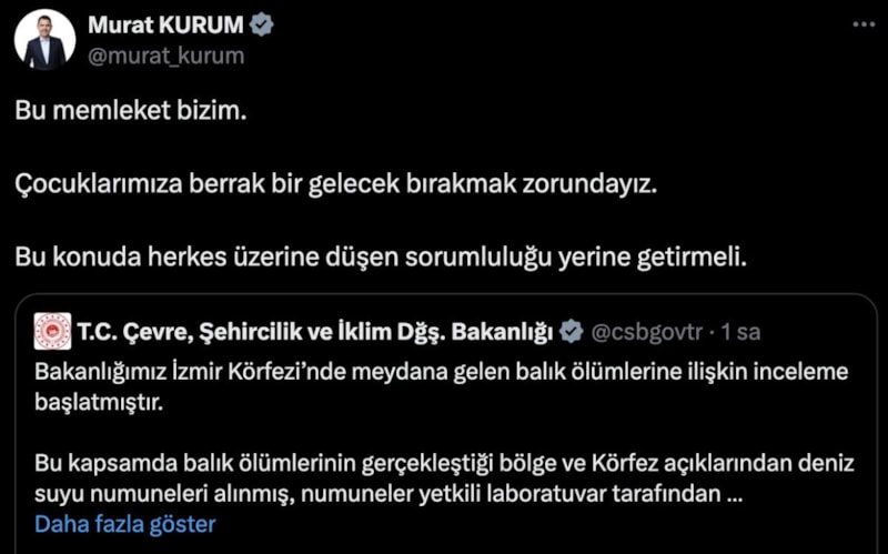 Konuya ilişkin bir açıklama da Çevre, Şehircilik ve İklim Değişikliği Bakanı Murat Kurum'dan geldi.
