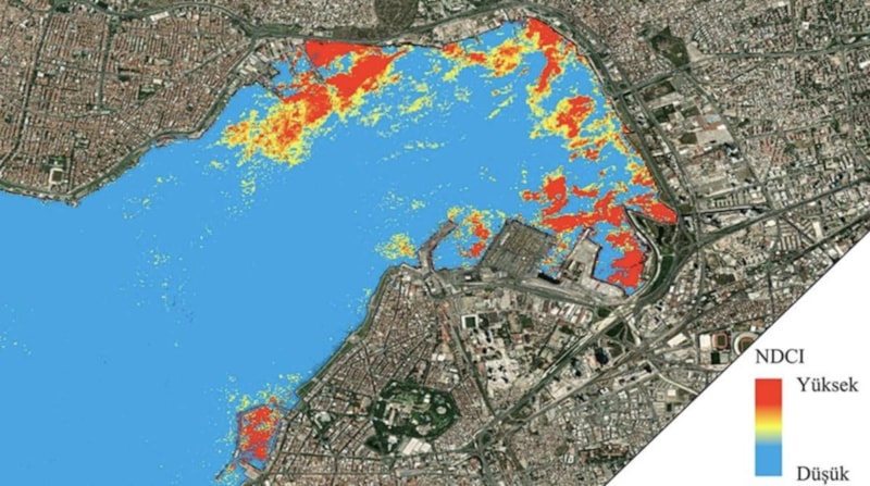 İzmir Körfezi'ndeki kirlilik şehirde hayatı olusuz etkilerken, Manisa Celal Bayar ve Yıldız Teknik üniversitelerinden akademisyenler, uydu görüntülerinin kaydettiği sudaki yansıma değerlerine göre haritalandırma yaptı.
