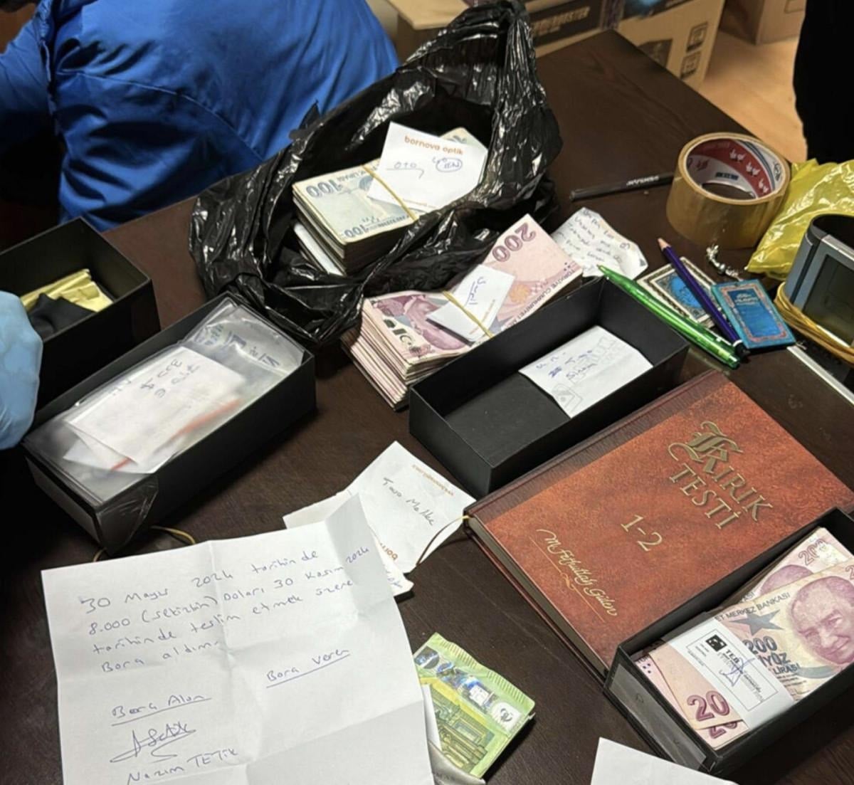 Adreslerde yapılan aramalarda; 546 bin 315 TL, 26 bin 316 ABD doları, 3 bin 295 euro, 3 milyon 250 bin TL değerinde çek, 3 Ata, 49 Cumhuriyet, 4 yarım, beşi bir yerde altın, 3 tabanca ve 2 tüfek ile çok sayıda dijital materyal ele geçirildi.
