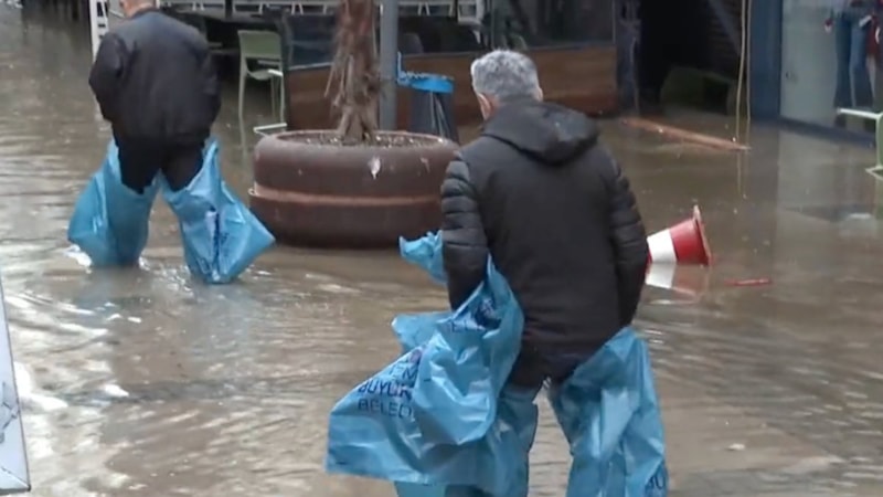İzmirlinin sel sularından korunma yöntemi: Çöp poşeti