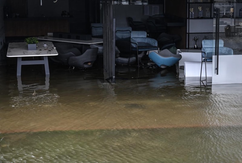 Kıbrıs Şehitleri ile Talatpaşa Bulvarı da deniz sularıyla doldu, bölgede elektrikler kesildi.