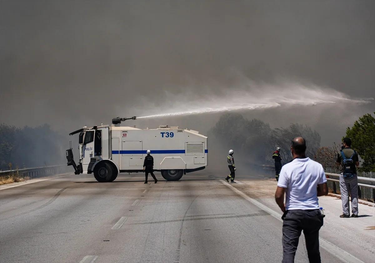 Yangının yollara sıçraması, bölgedeki ulaşımı felç ederken, ekiplerin alevlerle mücadelesi aralıksız sürüyor.