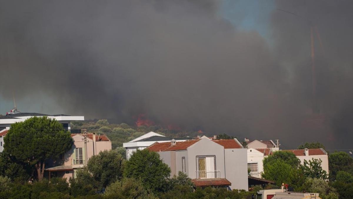 İzmir'in Çeşme ilçesi ıIdır Mahallesi’nde dün başlayan yangın, rüzgarında etkisiyle hızla yayıldı.