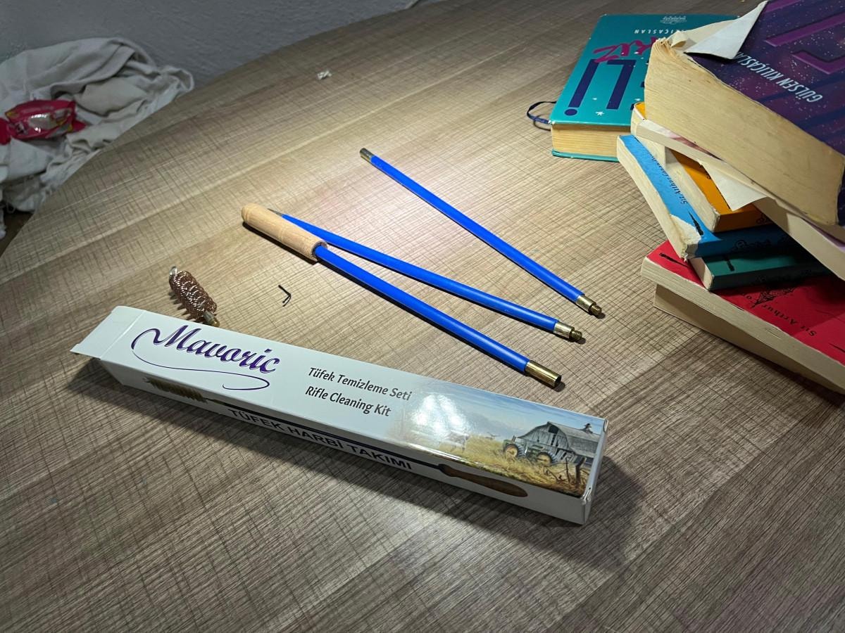 E.B.'nin kaldığı odada, silah bakımı için kullanılan tüfek temizleme setleri bulundu.