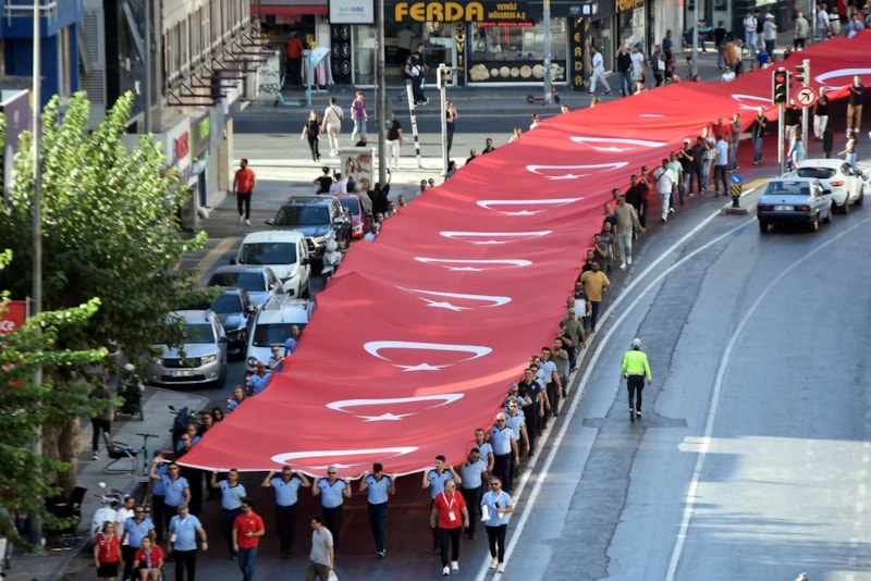 350 METRELİK TÜRK BAYRAĞI TAŞIDILAR
