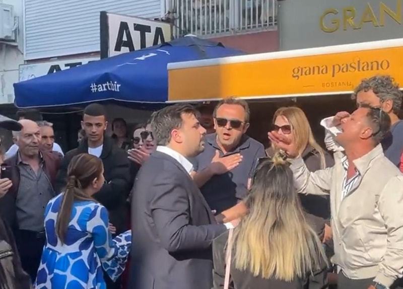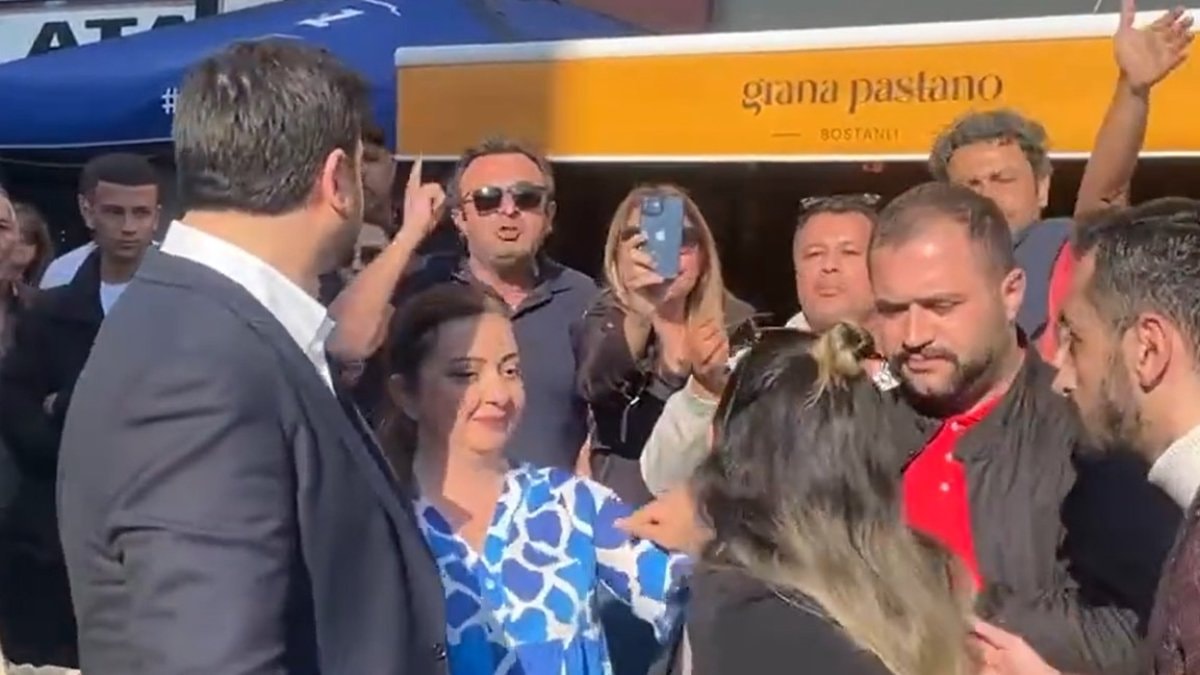 Alkollü mekanlarıyla ünlü Bostanlı Caddesi'nde gençlerle sohbet etmek isteyen İnan'a bir grup engel oldu.