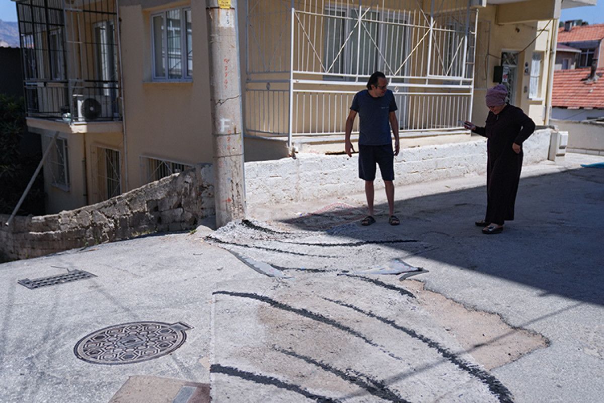 İzmir Bayraklı'da, Yaklaşık 4 ay önce Gümüşpala Mahallesi 7083 Sokak'taki bir binanın elektrik hattı için yetkililer tarafından yolda kazı çalışması yapıldı.