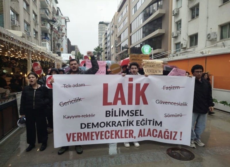 İzmir Alsancak Penguen Kitabevi önünde buluşan grup, Türkan Saylan Kültür Merkezi'ne yürüyüş gerçekleşti.