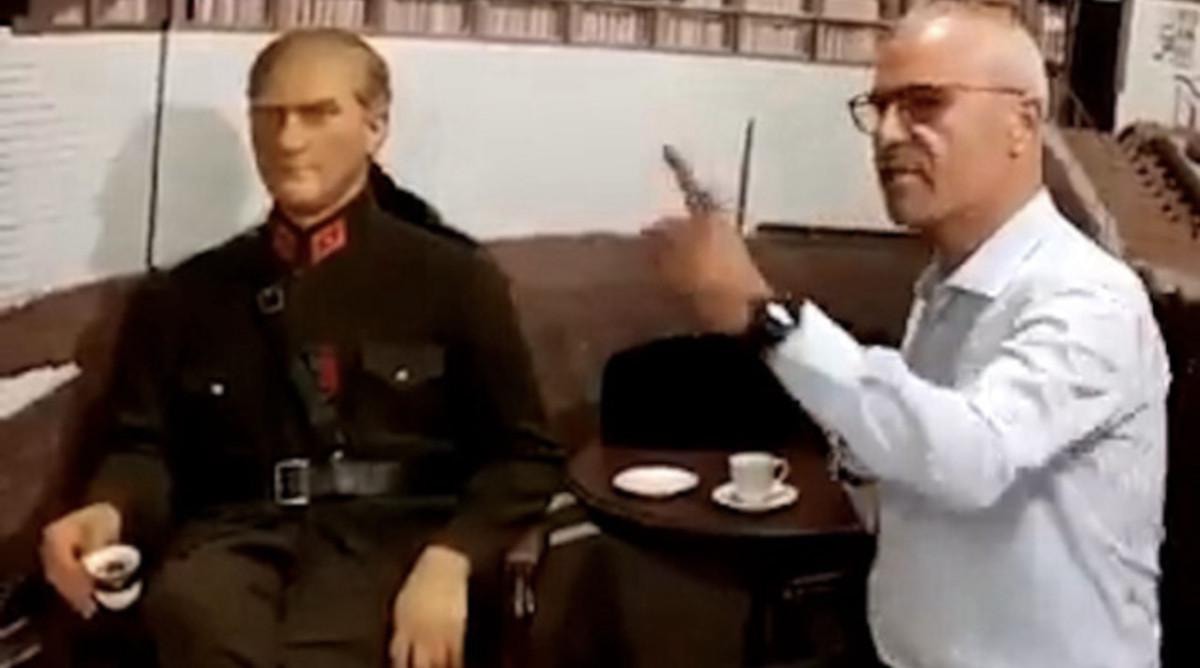 Atatürk'ün balmumu heykeliyle konuşan kişinin söylediği sözler sosyal medyada gündem oldu.