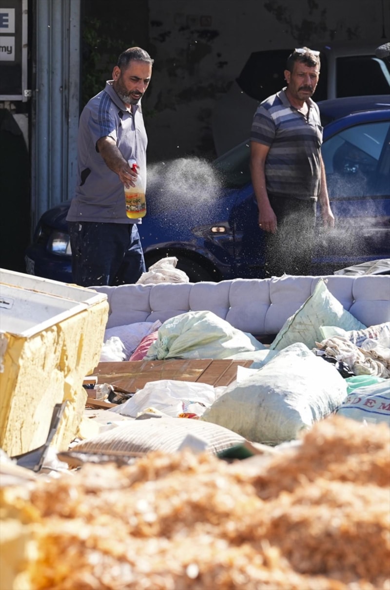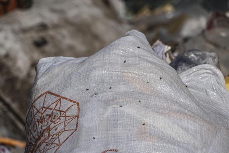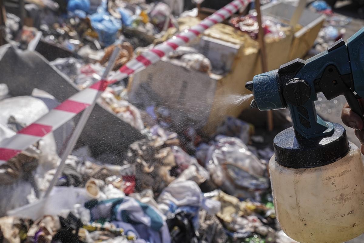 Buca ilçesi Seyhan Mahallesi'ndeki esnaf, çöp yığınlarının üzerine mazot dökerek haşereleri uzaklaştırmayı amaçladı.