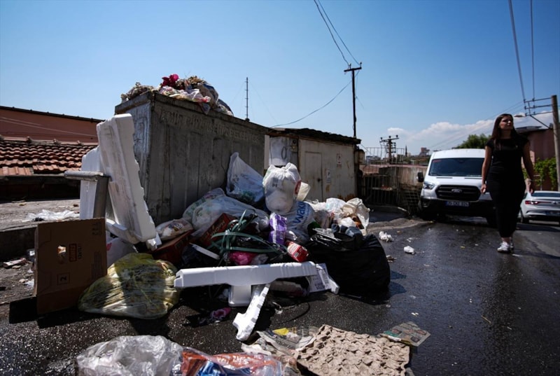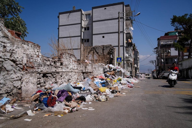 Konak'ta 1. Kadriye ile Tınaztepe mahallelerinde toplanmayan çöpler, yollara ve kaldırımlara taştı, sıcak havanın da etkisiyle etrafa kötü koku yayıldı.