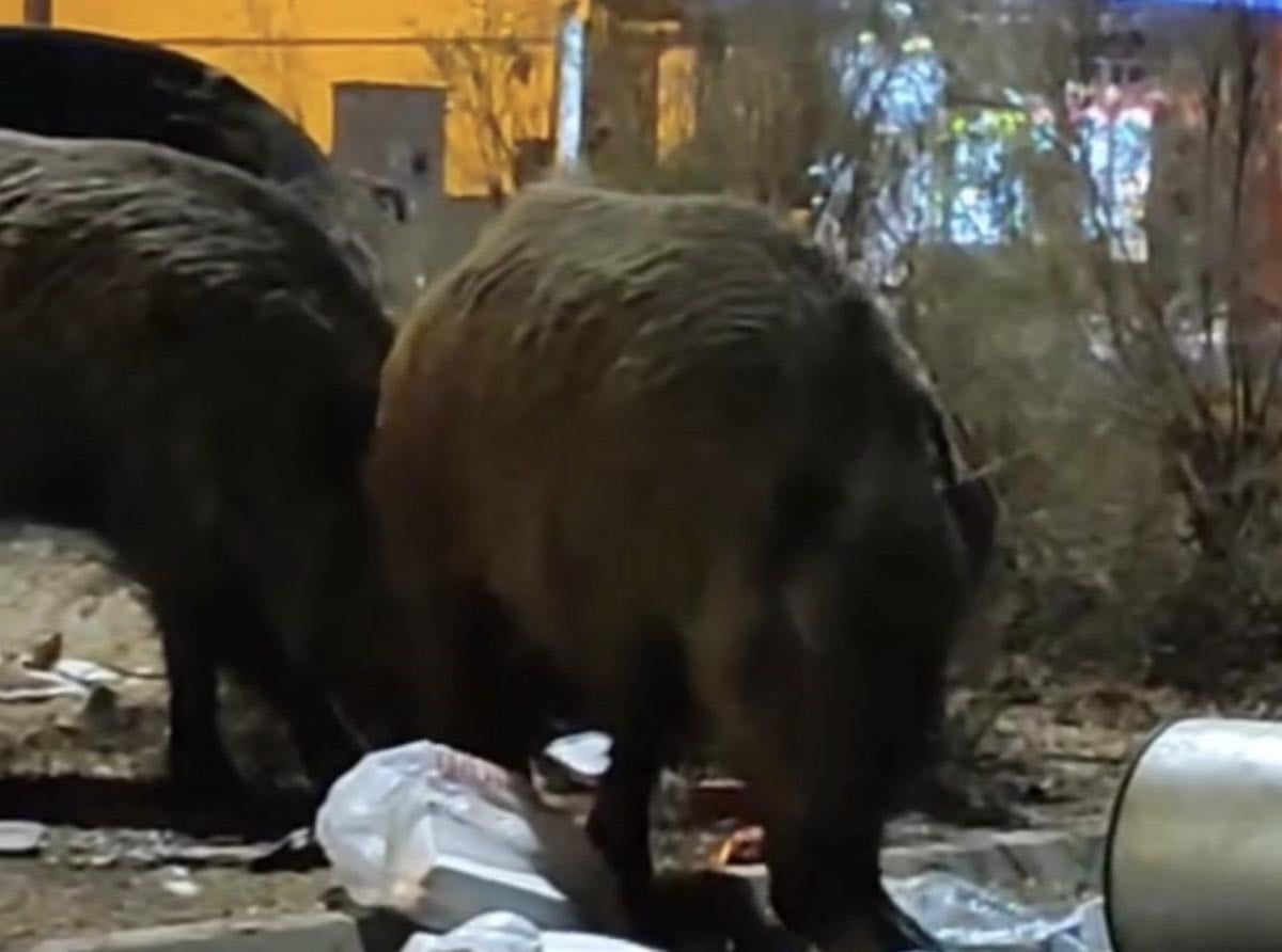 Çöp yığınlarını karıştırarak yiyecek arayan domuzlar, iri cüsseleriyle dikkat çekti. Sosyal medyada videonun paylaşılması üzerine bazı vatandaşlar, "Şunlara bak fil kadar olmuşlar." yorumlarında bulundu.
