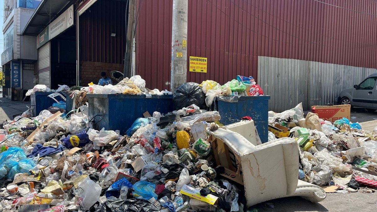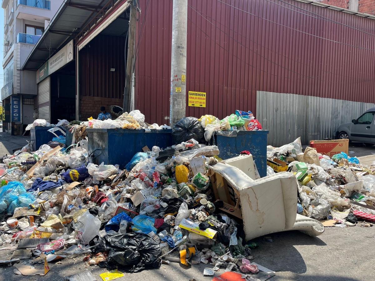 İzmir'in Karşıyaka ve Buca ilçeleri başta olmak üzere kent genelinde konteynerler ve çevresinde çöp yığınları oluştu.