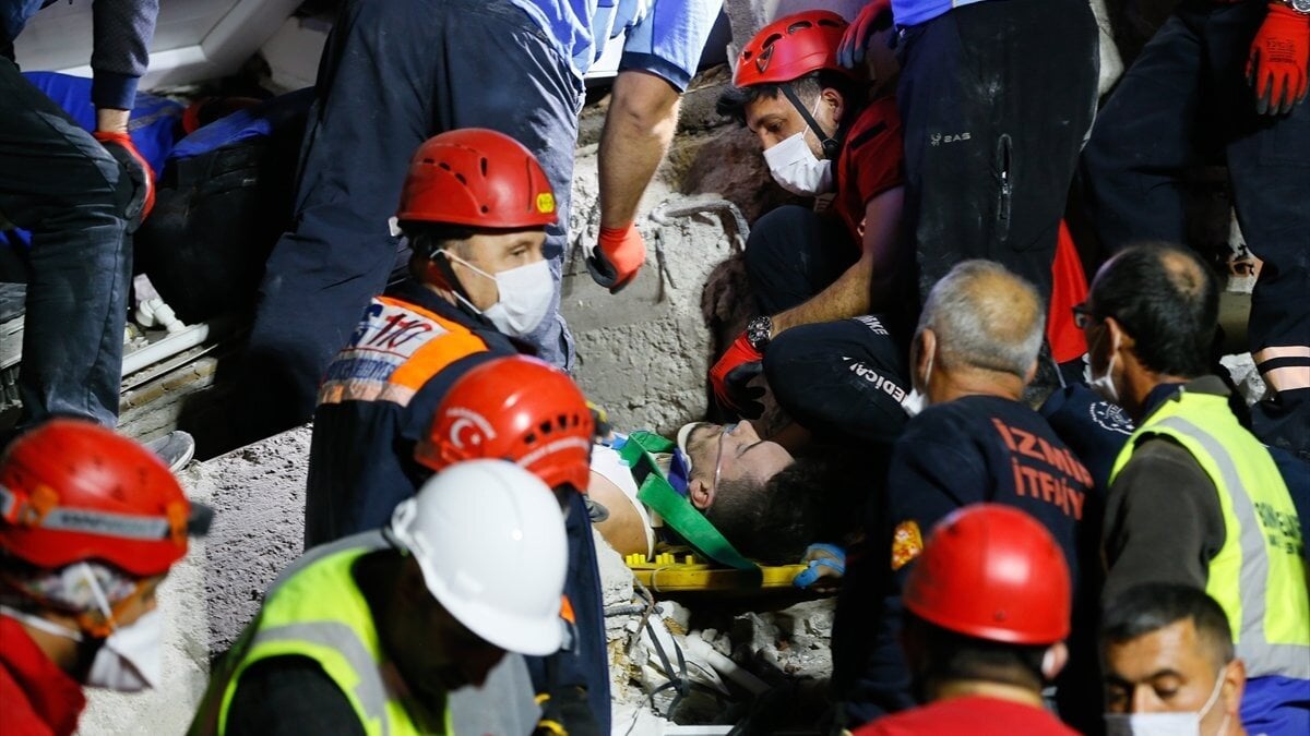 Bayraklı ilçesi 258. Sokak'ta yıkılan Doğanlar Apartmanı'nın enkazında AFAD, AKUT Arama Kurtarma Derneği ve Büyükşehir Belediye İtfaiyesine bağlı ekipler çalışmalarını sürdürüyor.