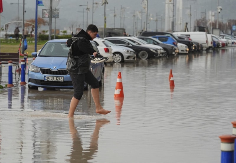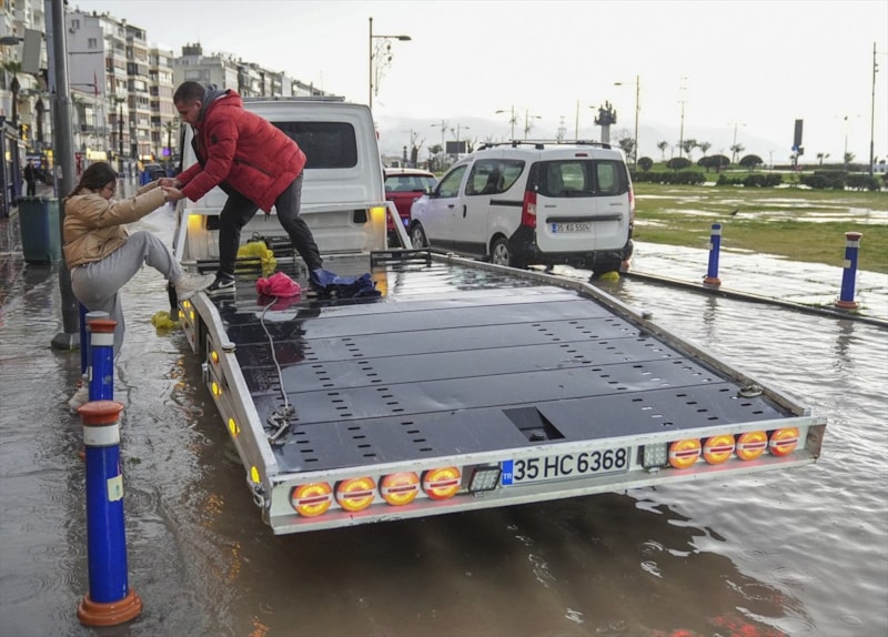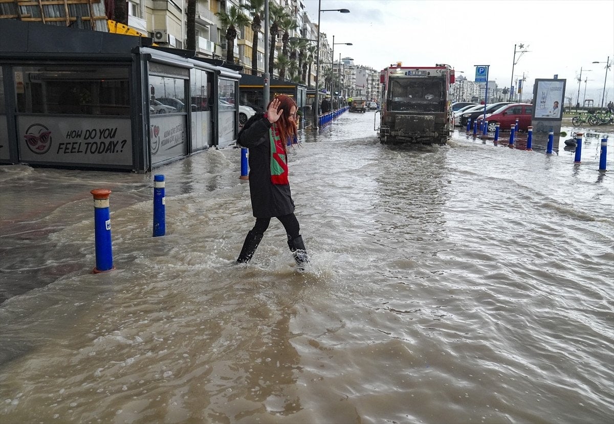 İzmir'de etkili olan sağanak, yaşamı olumsuz etkiledi.