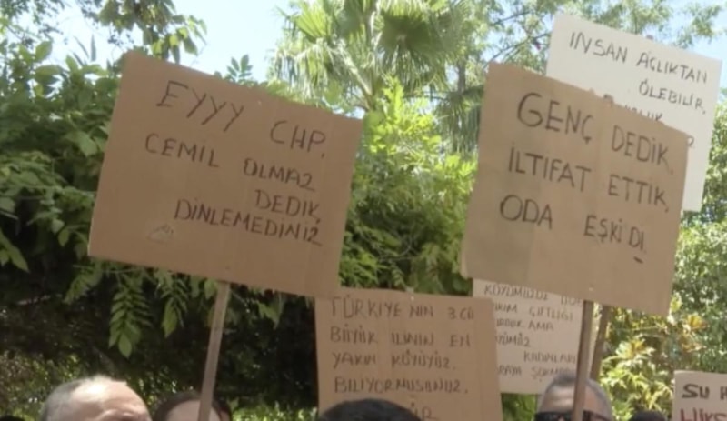 Bayramdan sonra o kadar rezillik çektik ki, abdest alacak suyu bulamadık. Her yeri arıyoruz ama ilgilenen yok. Eylemden sonra 7-8 tanker su taşımaya başladılar. Şu anda rezil bir durumdayız. Bu tankerle su taşımak çözüm değil, taşıma suyla değirmen dönmez, kalıcı çözüm istiyoruz.