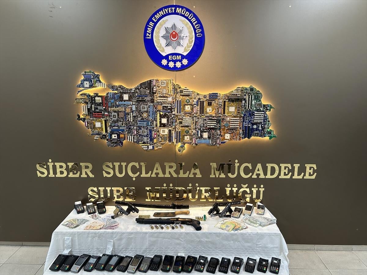 Adreslerde yapılan aramalarda 4 tabanca, pompalı tüfek, bu silahlara ait 70 fişek, samuray kılıcı, satır, bıçak, 25 pos cihazı, yüklü miktarda para ve altın, banka ve kredi kartları ile çok sayıda dijital materyal ele geçirildi.