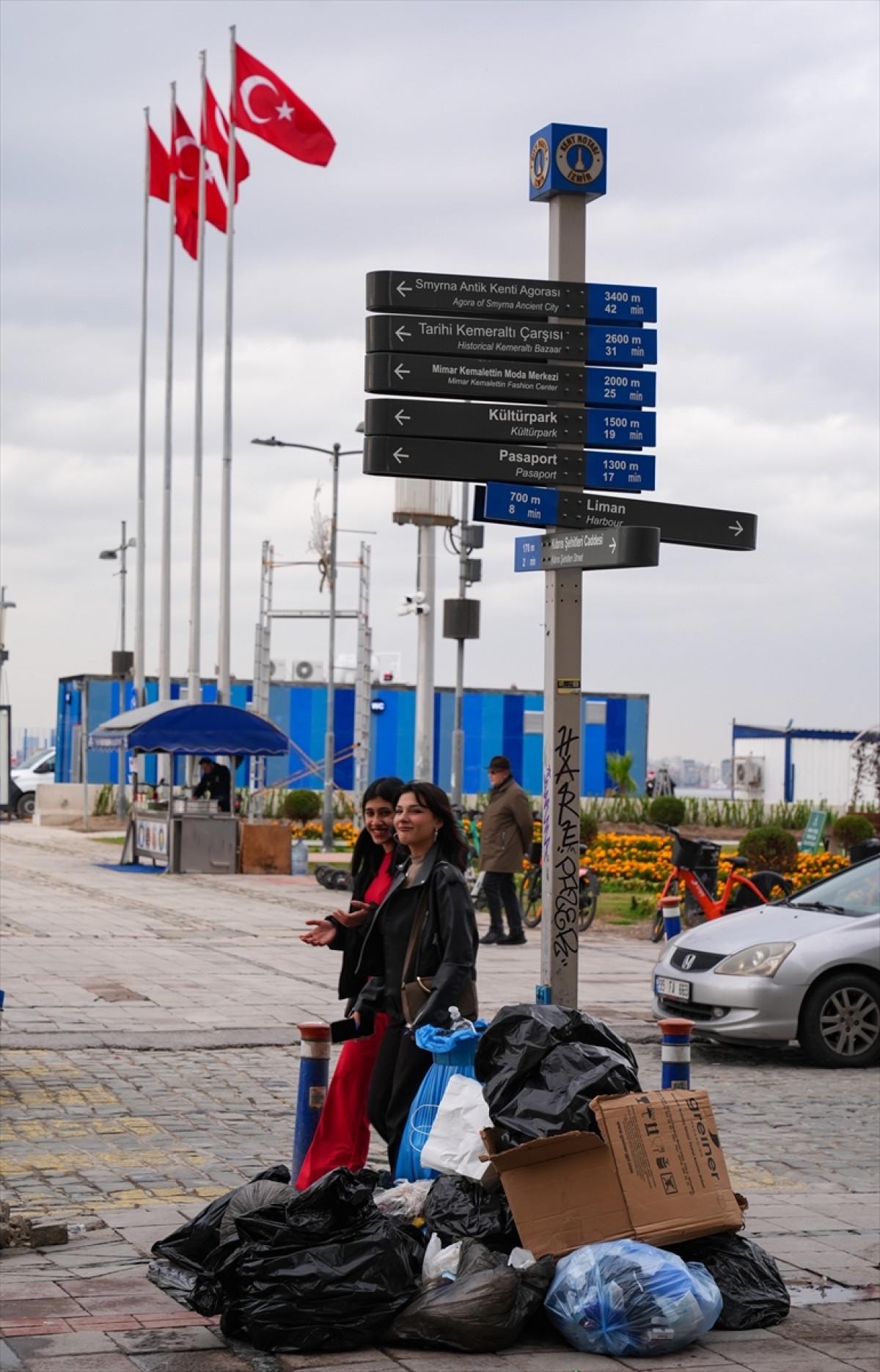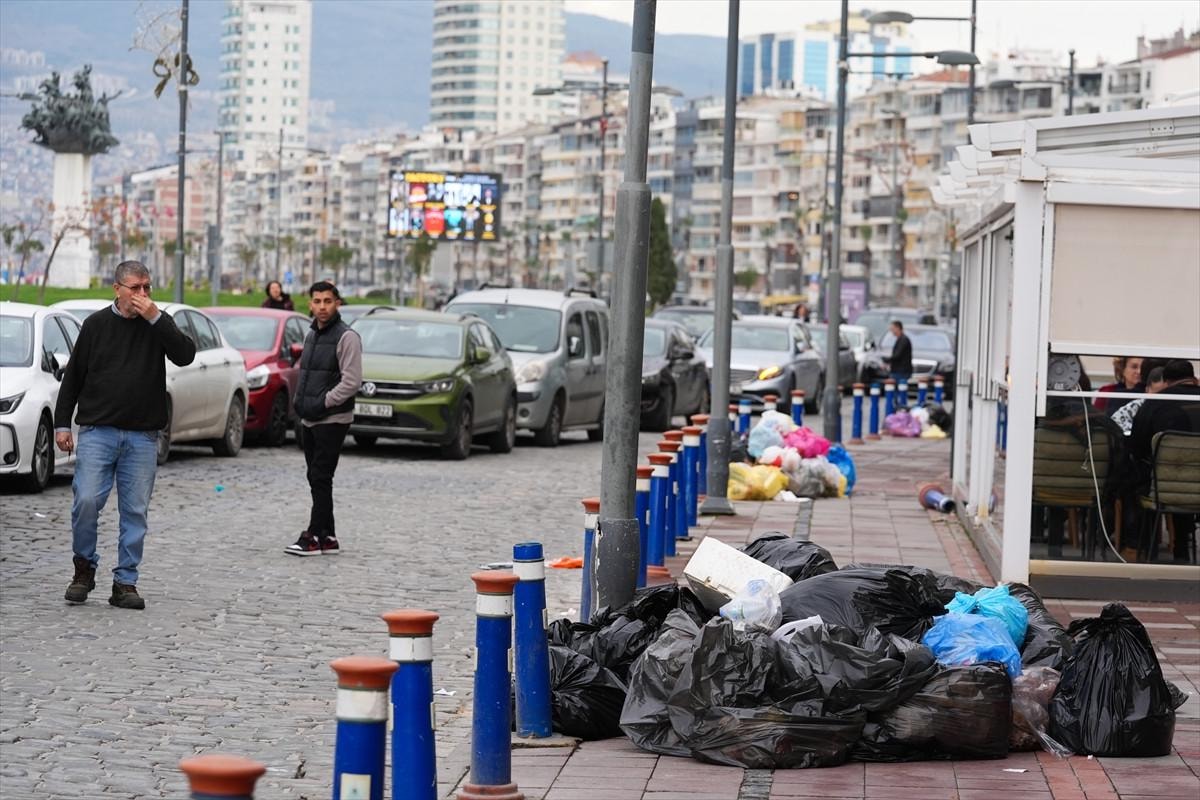 Konak ilçesinde, çöplerin toplanmaması kirliliğe neden oldu. Kıbrıs Şehitleri Caddesi ve Kordon bölgesinde çöp yığınları oluştu. Çöp kutularında biriken çöplerin kaldırımlara ve yola taştığı görüldü.