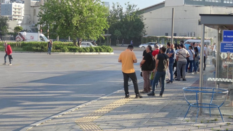 Vatandaşlar, otobüslere binebilmek için kuyruklar oluşturdu.