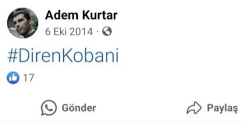 Kurtar'ın ayrıca PKK'lıların Türk Silahlı Kuvvetleri'ne karşı eylemlerine destek verdiği birçok paylaşım ortaya çıktı.