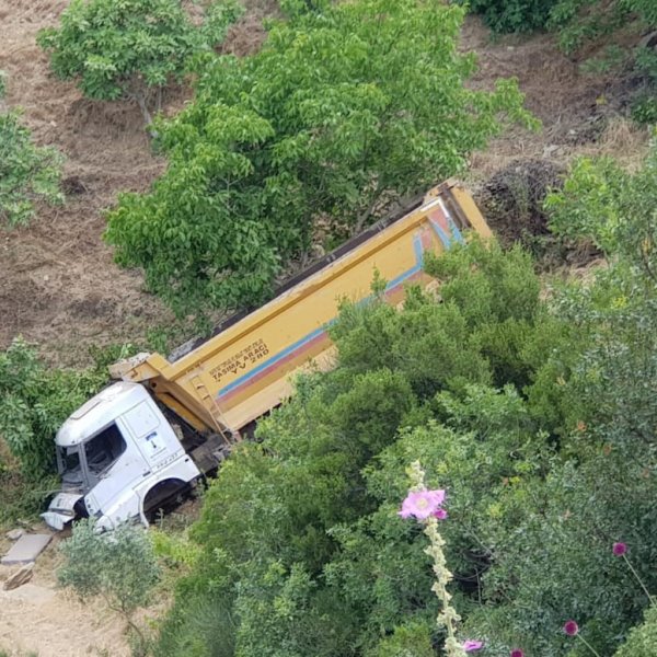 Bu sırada park halinde duran ve freni boşalan kamyon, 300 metrelik uçurumdan aşağı uçtu. Kaza sırasında kamyonun içinde hiç kimsenin bulunmaması can kaybını önledi.