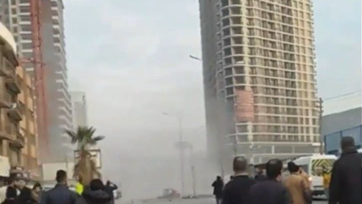 İnşaatın 21'inci katında bulunan vincin kabini ve bir bölümü, büyük bir gürültüyle aşağı düştü