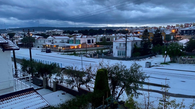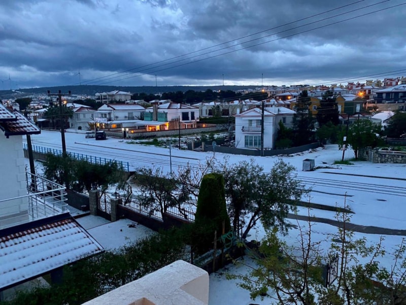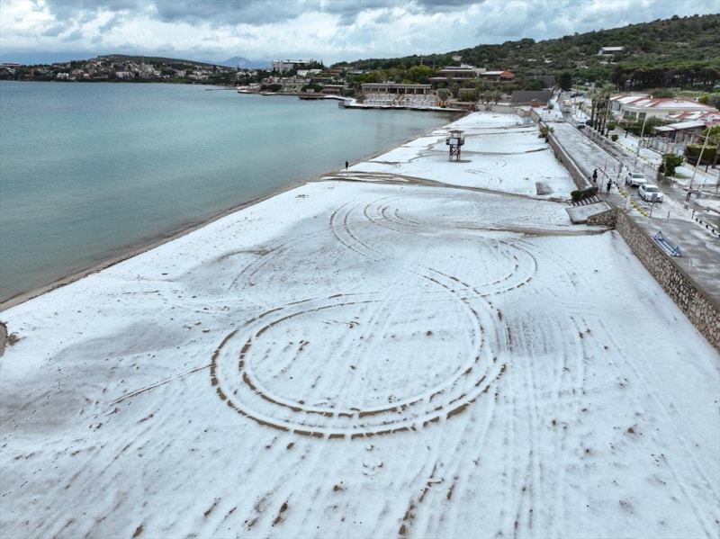 Kenttin Çeşme ve Karşıyaka ilçelerinde yağışların ardından dolu etkisini gösterdi. Sokak, cadde ve sahiller beyaz örtüyle kaplandı.