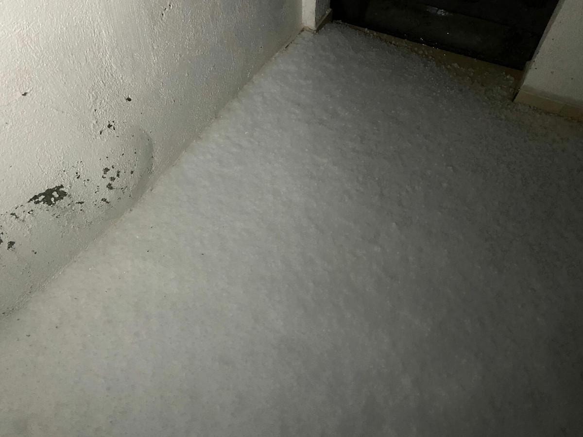 Bahçesindeki dolu yığınlarını temizleyen Aydın Kayserilioğlu, ilk kez bu kadar dolu yağdığını gördüğünü söyledi.