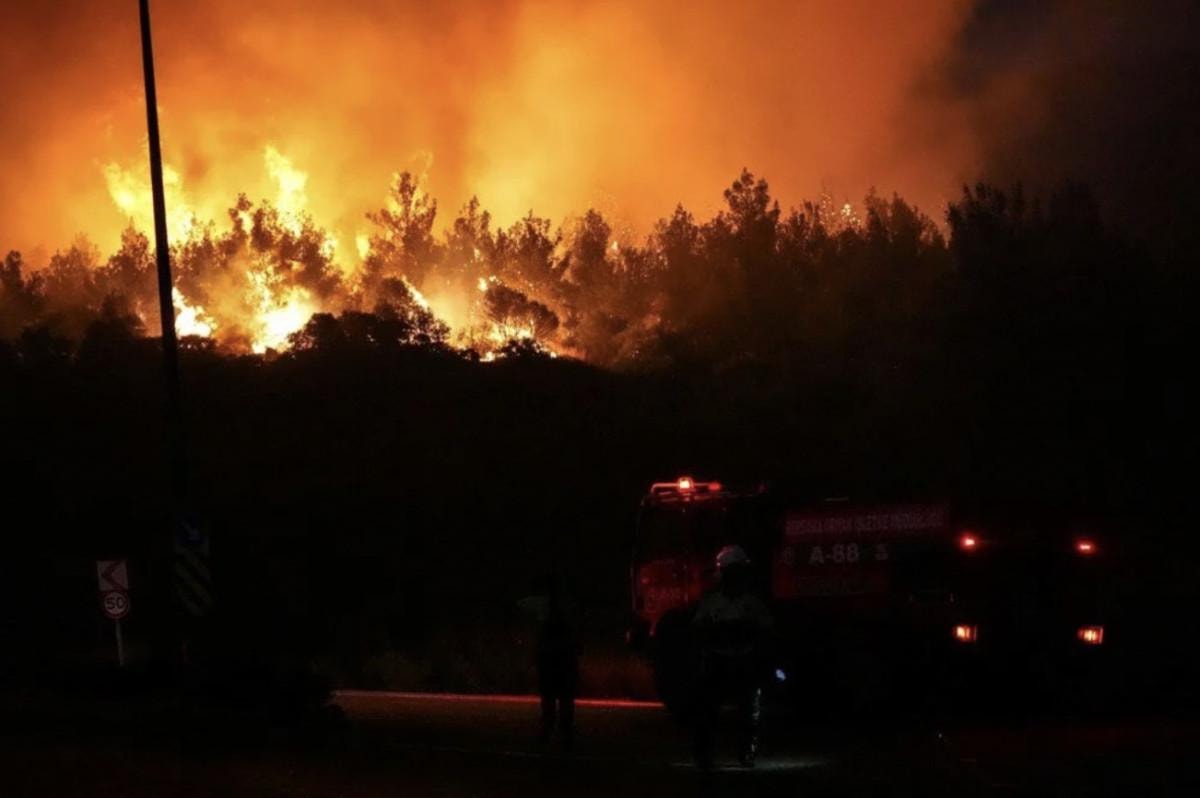 Rüzgarın şiddetiyle büyüyen yangınlar, Aydın'ın Kuşadası ilçesine sıçradı.