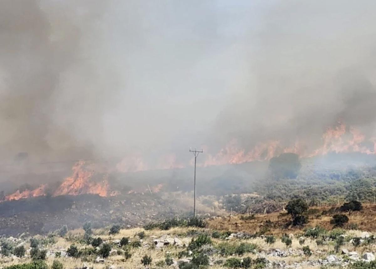 Urla ilçesinde, İzmir-Çeşme Otoyolu kenarındaki otluk alanda da yangın çıktı.