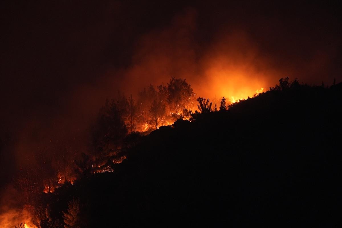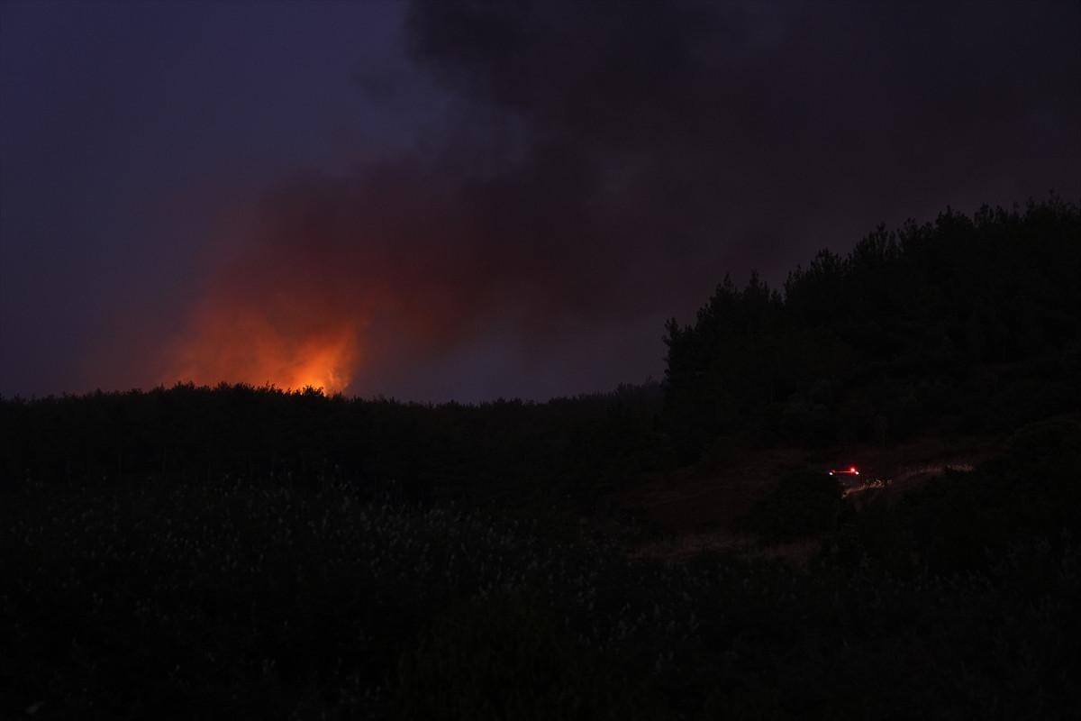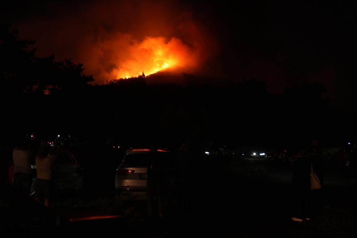 Ekipler kuvvetli rüzgarın etkili olduğu bölgede yangını kontrol altına alma çalışmalarını sürdürüyor.