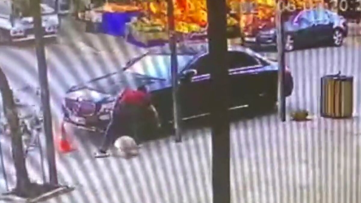 Elinde bıçakla aracın yanına gelen şahıs, ön lastiğe defalarca bıçak darbesi vurarak bölgeden uzaklaştı.