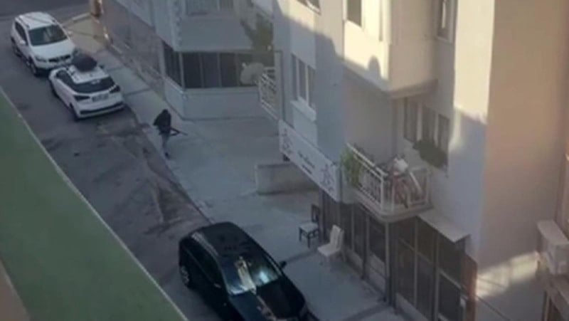 Görüntülerde, saldırganın pompalı tüfekle koştuğu ve bir apartman boşluğuna girdiği görüldü.