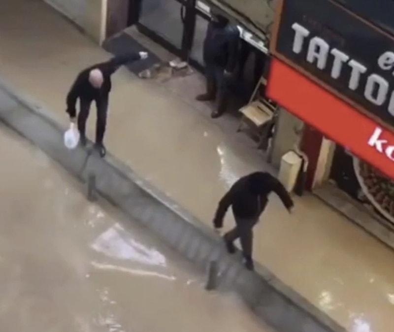 Su seviyesi yer yer bel seviyesini aşarken, insanlar dengelerini korumaya çalışarak adım atmaya uğraştı.