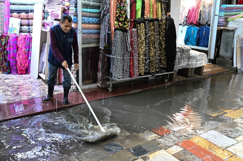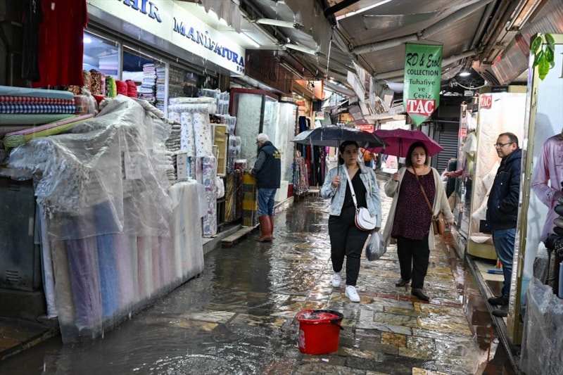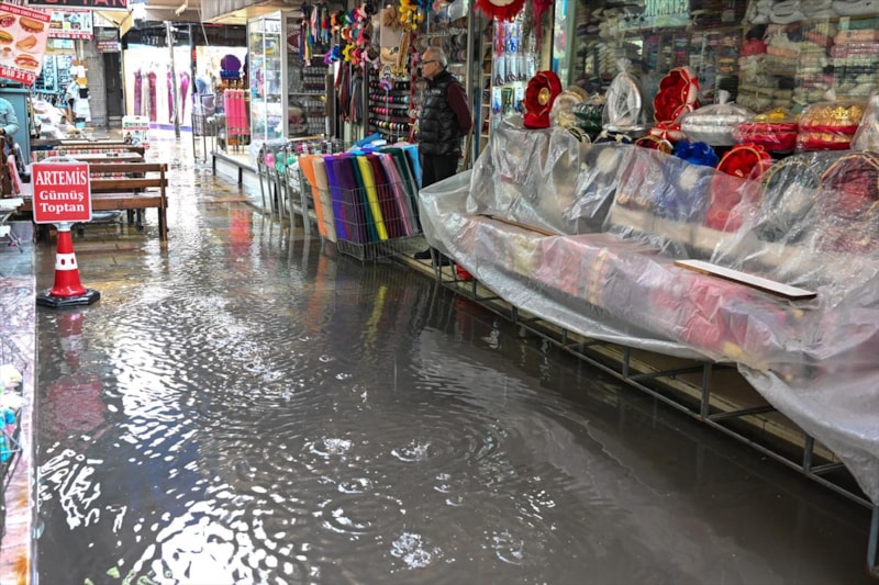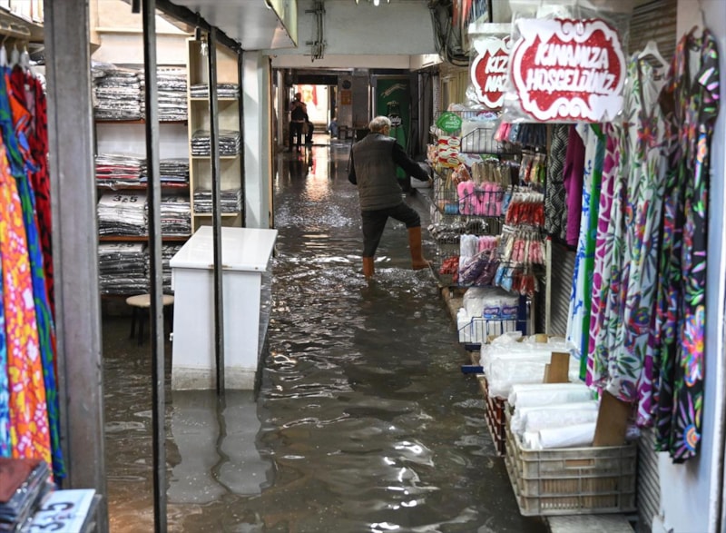 Kentte sağanak yağışların etkisini göstermesinin ardından birçok cadde ve sokak sular altında kalırken vatandaşlar ayakkabılarını çıkararak yürüdü.